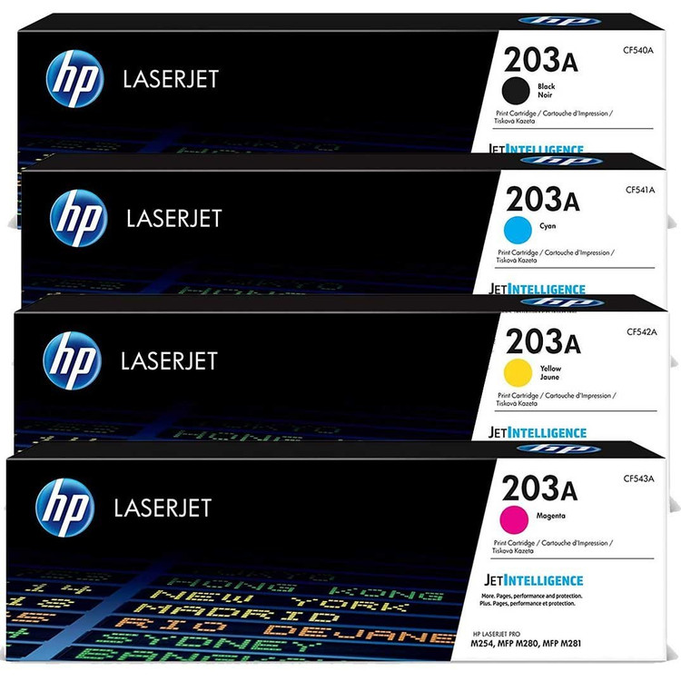 کیت 4 رنگ کارتریج لیزری طرح HP کد 203A جزو جدیدترین کارتریج های لیزر رنگی می باشد و قادر به چاپ 1400 برگ کاغذ مشکی و 1300برگ کاغذ رنگی است. کیت 4 رنگ کارتریج لیزری طرح HP کد 203A کیفیتی مناسب برای کارهای دفتری شما با قیمتی مناسب ارائه می دهد. عملکرد استاندارد آن باعث شده است که این کارتریج مناسب برای چاپگرهای شخصی و استفاده ی متوسط در نظر گرفته شده باشد. با استفاده از کیت 4 رنگ کارتریج لیزری طرح HP کد 203A می توان اسناد تصاویر و بروشورهای خود را رنگی و شفاف و با کیفیت مناسب چاپ کنید. هر کدام از رنگ های کیت 4 رنگ کارتریج لیزری طرح HP کد 203A، شناسه مخصوص به خود را دارند که CF540A – CF541A – CF542A – CF543A است. به طور معمول ، چاپگرهای جوهر افشان از کارتریجهای جوهر استفاده می کنند که حاوی رنگهای مرکب قرمز ، آبی ، سیاه و زرد هستند ، چند نمونه است. وقتی این جوهرها به نسبت های مختلفی ترکیب شوند ، رنگهای متنوعی را ایجاد می کنند. برای چاپ متن و یا تصاویر قطرات جوهر کوچک از جوهر را از روی کارتریج روی کاغذ اسپری کنید.