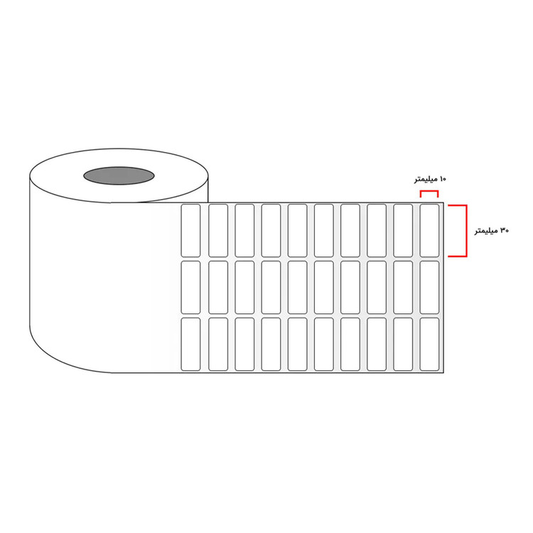 رنگ این لیبل سفید براق بوده و در ابعاد 10 میلیمتر در 30 میلیمتر عرضه می شود و حاوی 10000 عدد لیبل به صورت سه ردیف می باشد